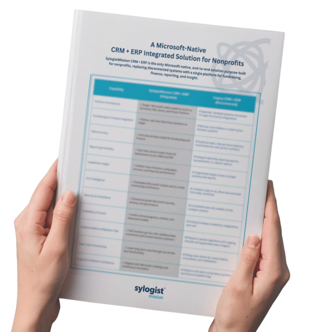 SylogistMission CRM & ERP delivers Microsoft-native integration from donor activity to financial reporting.